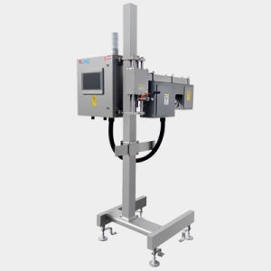 被检测产品由于压力过高、过低或者封口不严,经过二次灭菌以后罐内的压力减小的情况,产品盖子变形不能恢复,常规的非接触式压力检测机不能检测出来,只能通过接触式的压力检测机来检测不合格品。挤压式压力检测机运用挤压和接触式压力传感技术进行检测,当罐体经过检测机时,检测机双侧皮带挤压罐体,皮带后的压力传感器实时传输压力数值,控制中心对压力数值进行分析,并做出判断。当压力值低于或高于预定数值时,信号传输至剔除装置,由剔除器将不合格品击打出去。